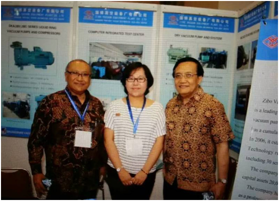 印度尼西亞油氣支持協(xié)會(huì)會(huì)長Ir.Banbang Purwohadi,Msi,MT先生與淄博真空設(shè)備廠有限公司總經(jīng)理黃志婷合影。