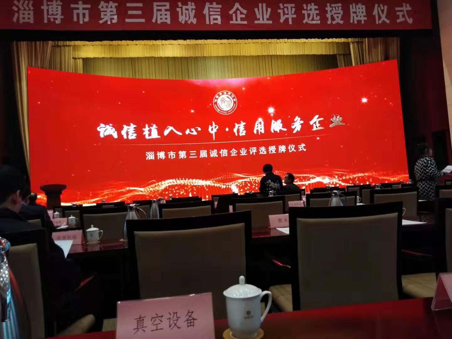 2020年1月9日,淄博市第三屆誠(chéng)信企業(yè)授牌儀式在山東齊盛國(guó)際賓館會(huì)議中心隆重舉行。在本次評(píng)選授獎(jiǎng)活動(dòng)中,淄博真空設(shè)備廠有限公司再次被評(píng)為“淄博市優(yōu)秀誠(chéng)信企業(yè)”。