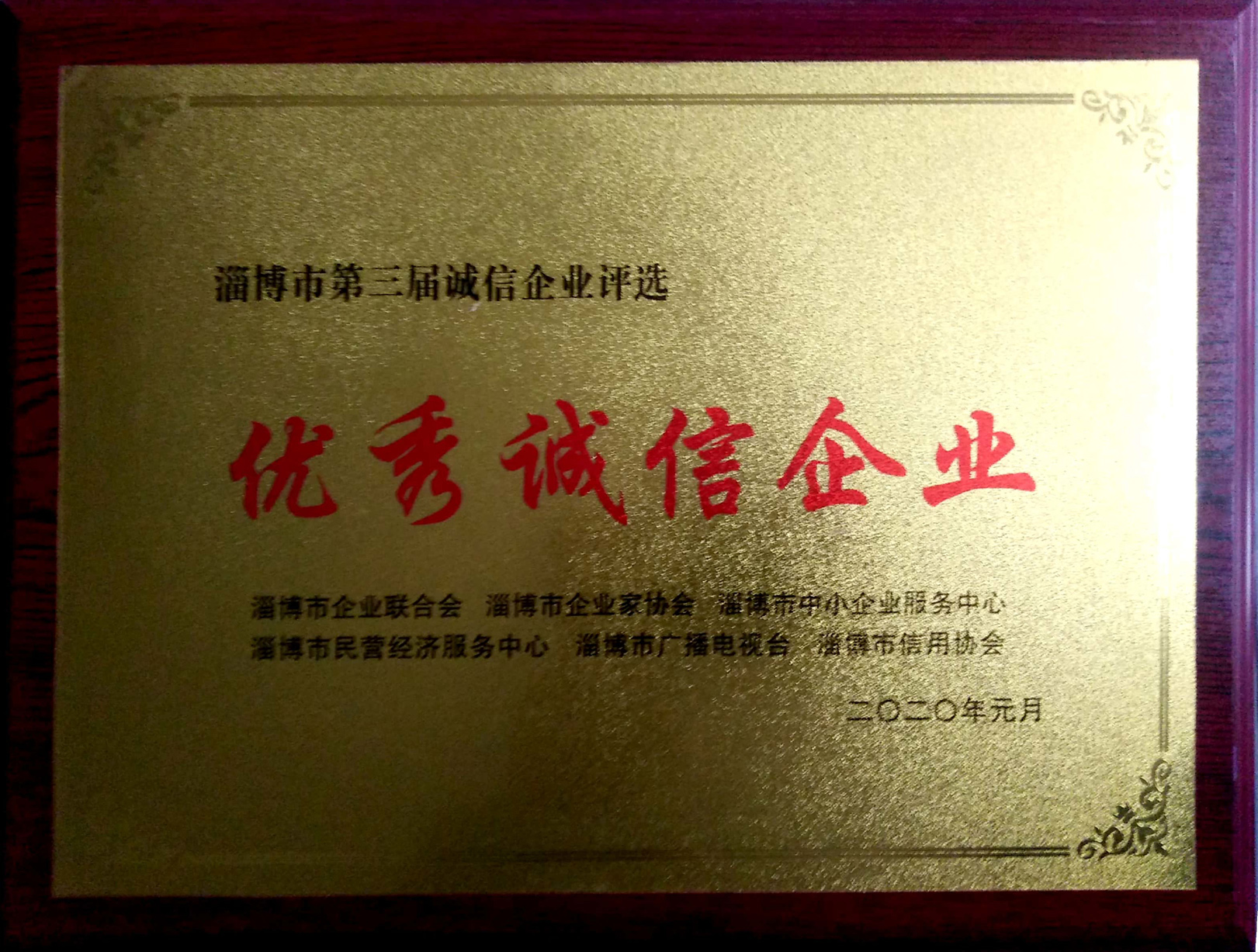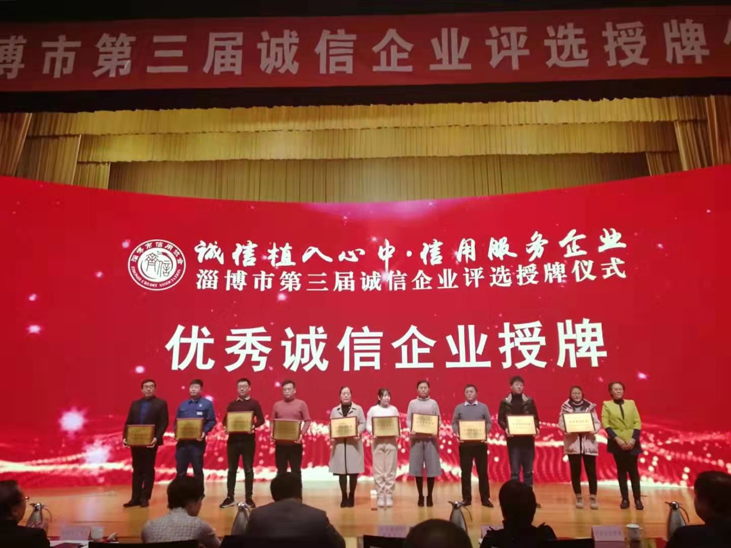 公司榮獲“淄博市優(yōu)秀誠(chéng)信企業(yè)”稱號(hào)