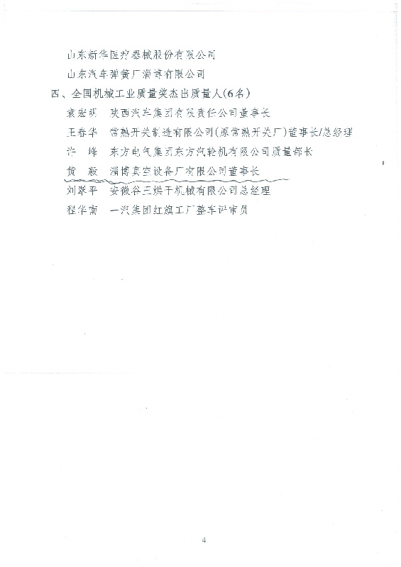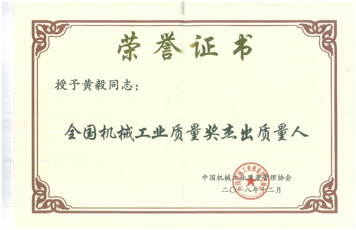 黃毅董事長(zhǎng)榮獲“全國(guó)機(jī)械工業(yè)質(zhì)量獎(jiǎng)杰出質(zhì)量人”榮譽(yù)稱號(hào)