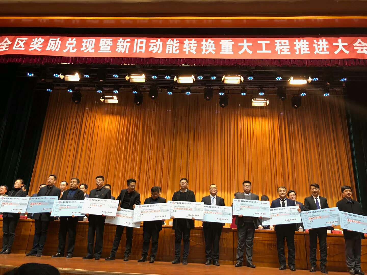2月24日,“全區(qū)獎勵兌現(xiàn)暨新舊動能轉(zhuǎn)換重點工程推進大會”在原山大會堂召開。會議對全區(qū)2017年度各項工作中涌現(xiàn)出的先進單位和個人進行了表彰獎勵,并對今后我區(qū)企業(yè)提高產(chǎn)品附加值、科技含量、重振工業(yè)雄風、加快實施新舊動能轉(zhuǎn)換等各項工作進行具體部署。我公司因成功申報“國家高新技術企業(yè)”、“山東省企業(yè)技術中心”和“區(qū)顏山英才”被授予“2017年度全區(qū)科技創(chuàng)新品牌建設先進企業(yè)”,并得到區(qū)委、區(qū)政府的表彰獎勵。